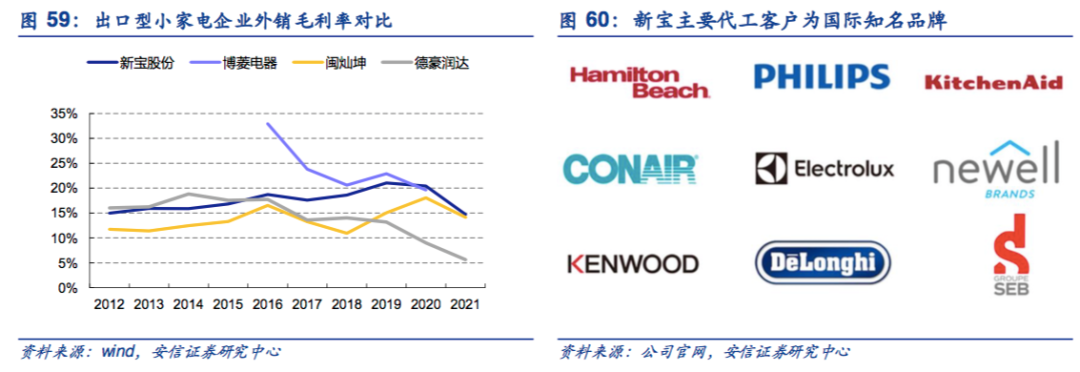 然而,相比以自主品牌为主的公司,新宝股份的毛利率则相形见绌许多。