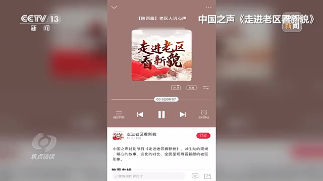 中央广播电视总台陕西总站记者 温超:通过录音报道和现场连线的方式,来着力表现革命老区在乡村振兴、经济社会发展、民生改善以及红色资源的开发和利用等方面的一些成就,尽最大努力让去全国的观众和听众能够感受到老区新的变化、新面貌和新发展。