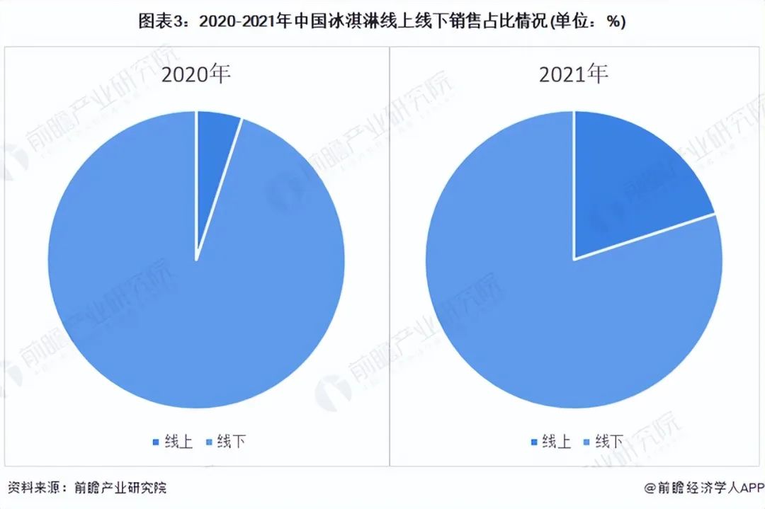 数据显示,2020年,冰淇淋线上销售占比约为5%,2021年,这一比例上升至20%。