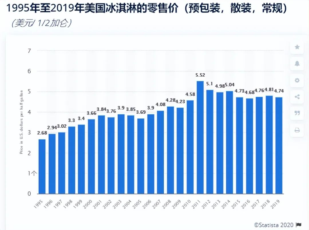 疫情来后,快消品价格在五年来首次出现下跌,但冰淇淋不降反涨。如果说2014年的涨幅是由于成本原因上涨,本次上涨更像是营销噱头+追求更高产品溢价所致。