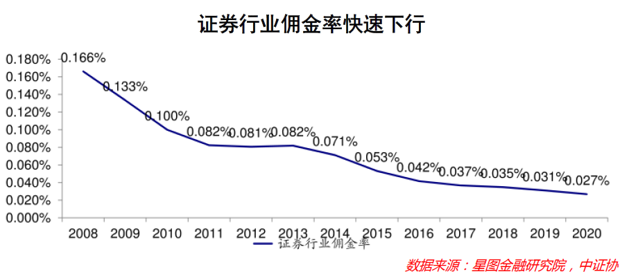 一是经纪业务,即收取证券交易的手续费,取决于股市中的换手率和佣金率。证券市场是会员制度,个人没办法在市场独自进行买卖,所以委托有会员资格的券商来进行代理买卖,投资者在券商开立个人账户进行交易,并支付佣金。对于券商而言,是一种标准的持牌业务,这种看似垄断的业务,因为同质化竞争得太激烈,近年来费率持续走低。