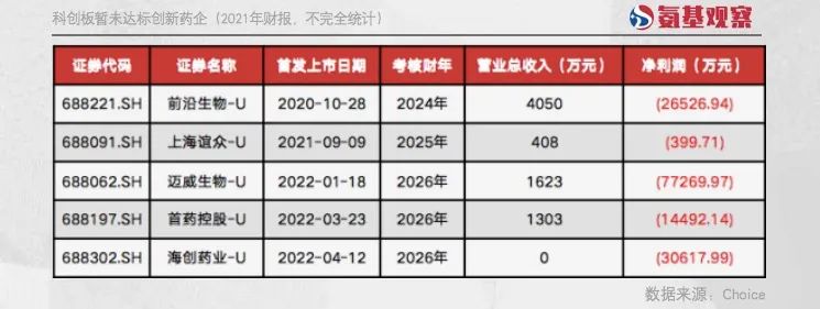 根据现有数据来看,科创板未盈利创新药企,都还有充分的时间,来研发产品,以达到业绩标准。