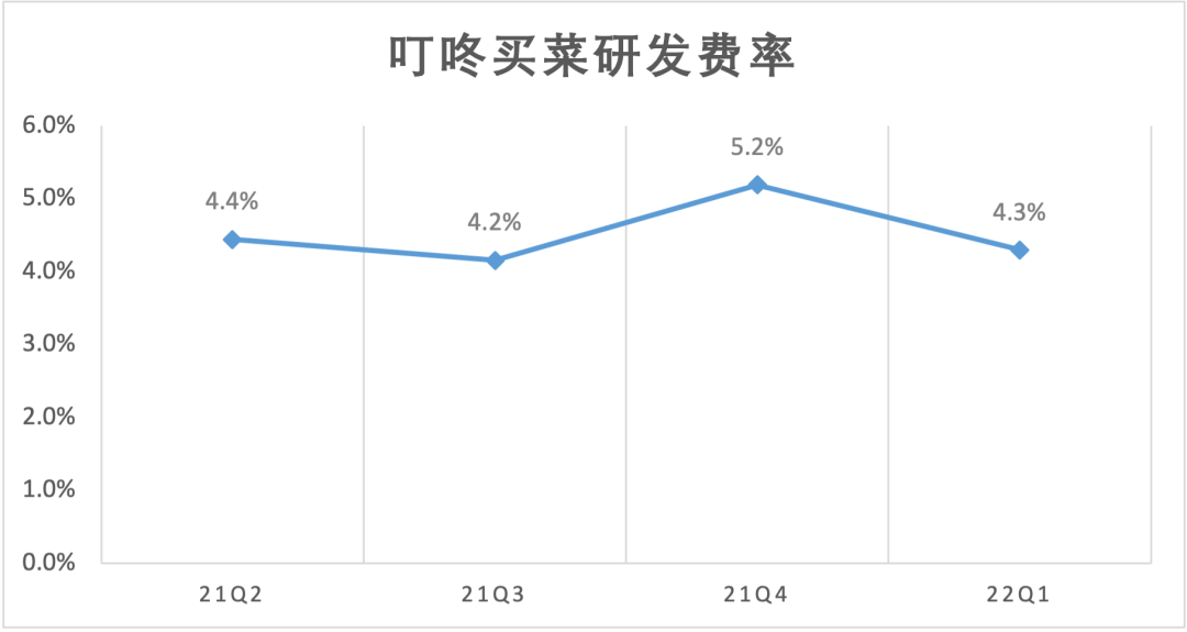 更重要的是,在挖深商品护城河上,叮咚买菜还在持续加码。Q1财报显示,叮咚买菜研发费用共支出2.339亿元,同比增长49.5%,是叮咚买菜成本项中增幅最大的项目。