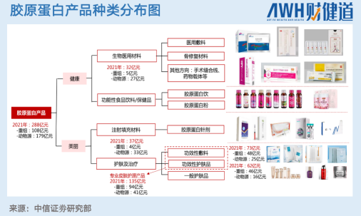 市场的“古早产品”胶原蛋白肽早已风靡全球,以欧洲、日本为首要发展地带,后期出现的骨填充、人工骨、牙科植入等在医疗领域亦应用广泛,更何况当下风靡的胶原蛋白面膜。