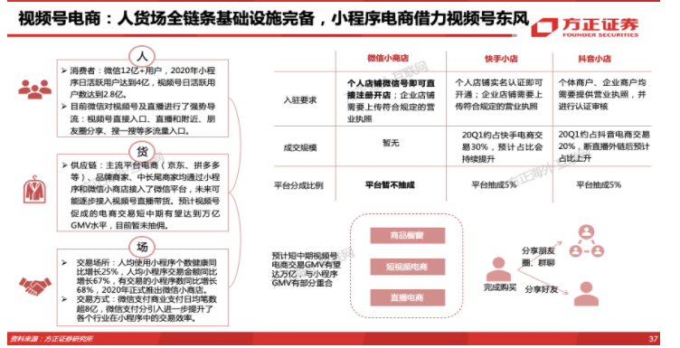 抖音通常被认为更注重公域流量,适合品牌广告,但直播间情感粘性较弱,因此在今年提出了“全域兴趣电商”的概念,从“货找人”变为“人找货”;快手被认为更注重私域流量,老铁直播间复购率高,提出“信任电商”和“新市井电商”,但品牌广告表现较弱。而视频号则试图打通公私域流量之间的区隔。