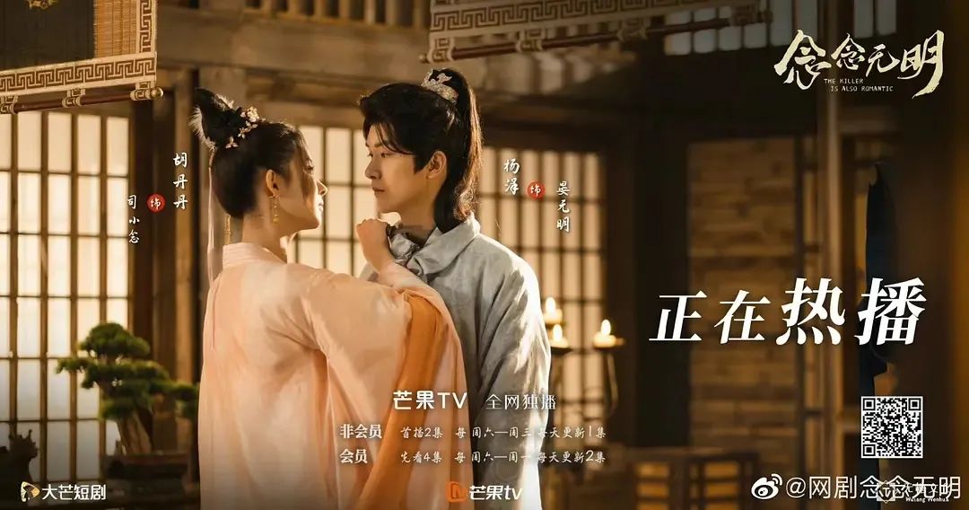 在芒果TV,也出现了同样的现象。新类型古装剧《念念无明》,通过新颖的设定,古装版的“史密斯夫妇”,豆瓣评分7.0,评分人数达2.5万,成为短剧领域的口碑佳作。虽多次登上抖音、微博热搜榜,但是并未成为剧集“顶流”。