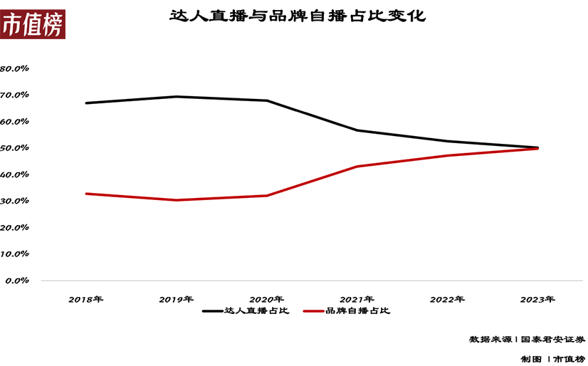 一方面,品牌自播已成为不可逆的趋势,国泰君安证券在一份研报中预测,预计到2023年,品牌自播在直播电商的占比将接近一半。