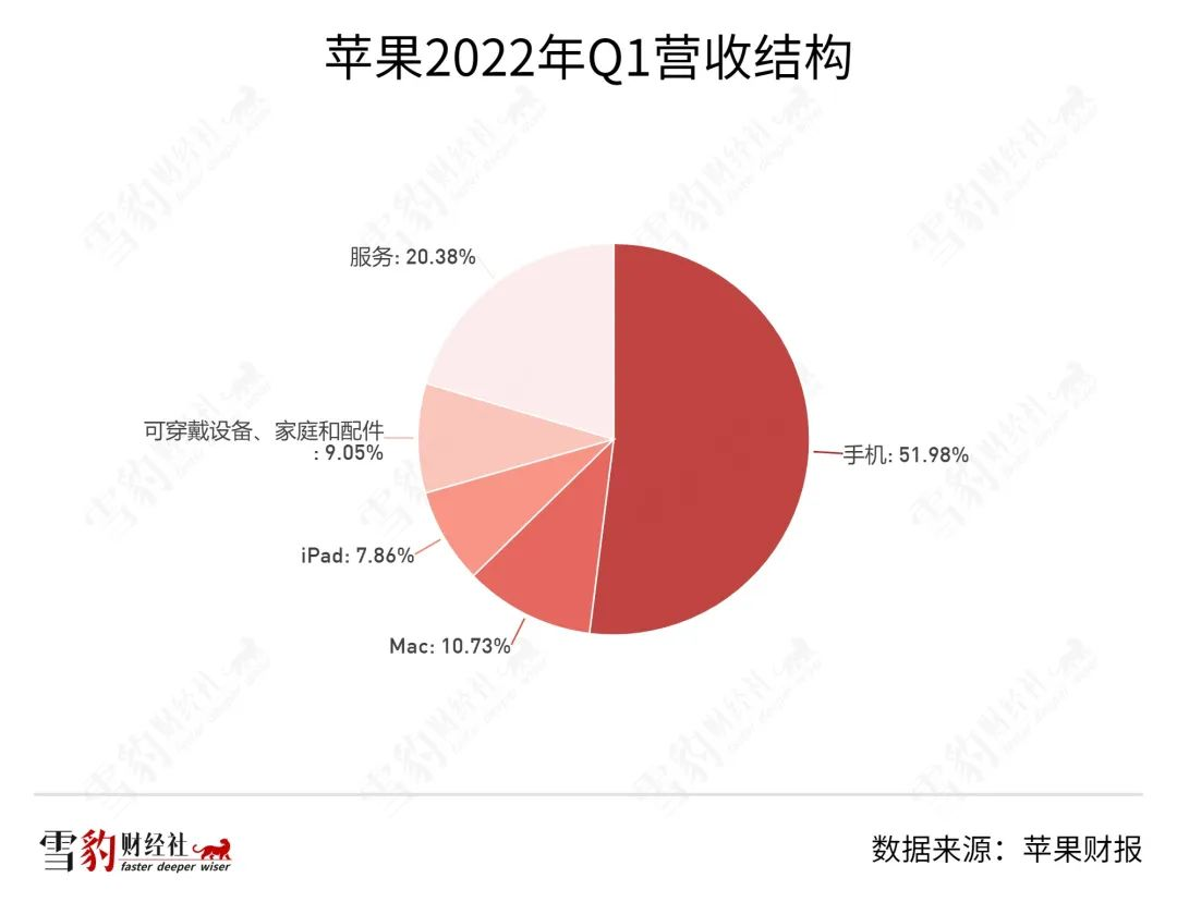 据苹果2022年Q1财报,软件服务为苹果贡献了198亿美元营收,占总营收比例超两成。