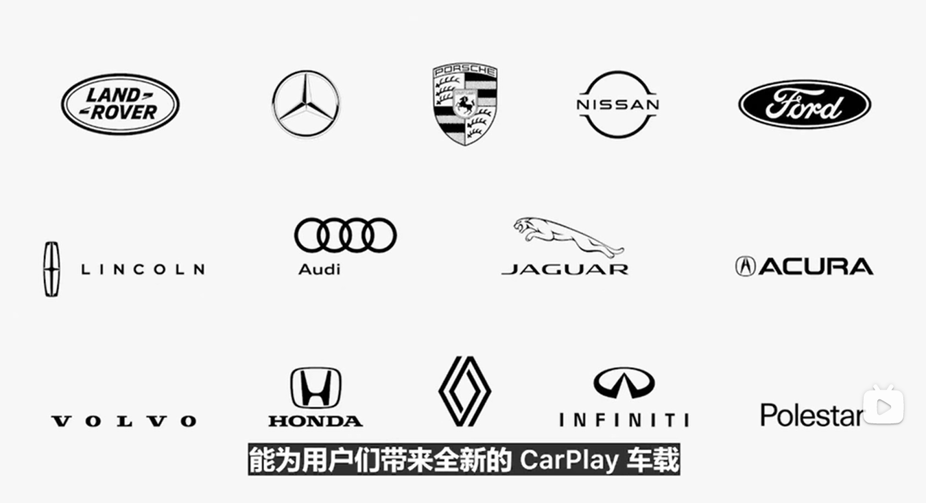 在苹果汽车工程高级经理Emily的介绍中,最新的CarPlay已经可以与硬件深度融合,实现控制空调、座椅等功能,越来越像一个真正的智能座舱系统。为壮声势,苹果特意将支持新版CarPlay的车企名单放进PPT,作为压轴环节,路虎、奔驰、日产、福特等主流品牌均在其中。
