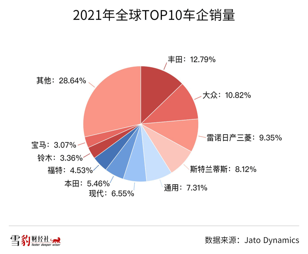 一方面,造车环节多、难度高、投入大,再加上不同市场的消费者需求迥异、众口难调,以野蛮人的身份闯入汽车行业,需要突破很高的壁垒。也正因如此,百年汽车行业发展至今,也没有出现一家独大的寡头。2021年的全球销冠丰田,也仅占全球汽车出货量的12.8%。