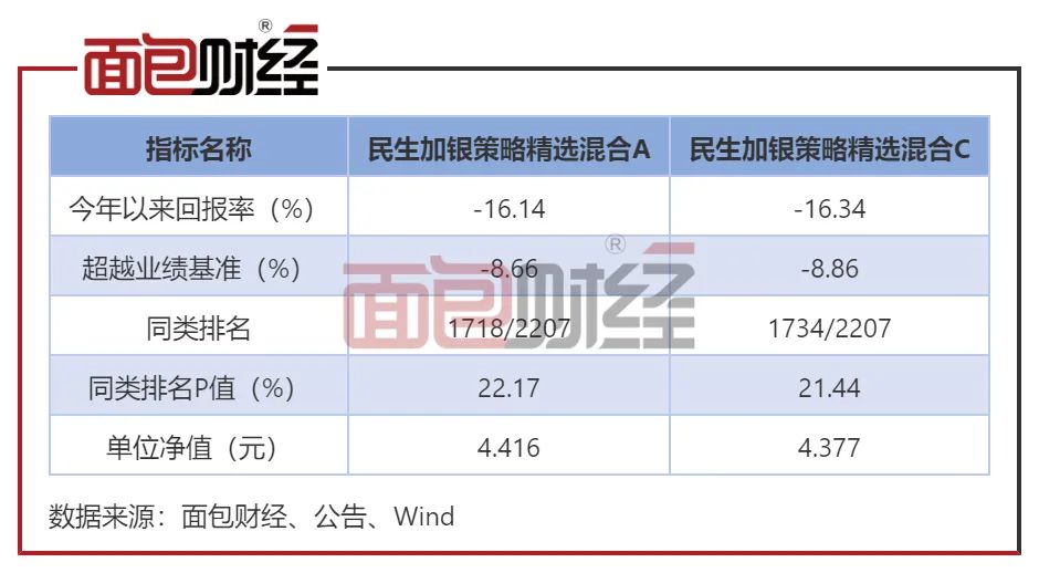 面对2022年以来的股市动荡,“金牛”基金的抗回撤能力却略显乏力。数据显示,民生加银策略精选混合A、C类产品年内截至2022年6月17日的回报率均低于-16%,在2207只同类基金中排在1700名以外。