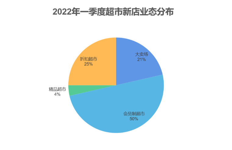 根据赢商网的数据(数据统计包括14家超市:永辉、步步高、华润万家、物美、大润发、沃尔玛、卜蜂莲花、永旺、麦德龙、家乐福、盒马、京东七鲜、奥乐齐、苏宁),2022年一季度,14家超市新开店 会员制超市占半壁江山,折扣超市占1/4,传统主流的大卖场仅占21%。