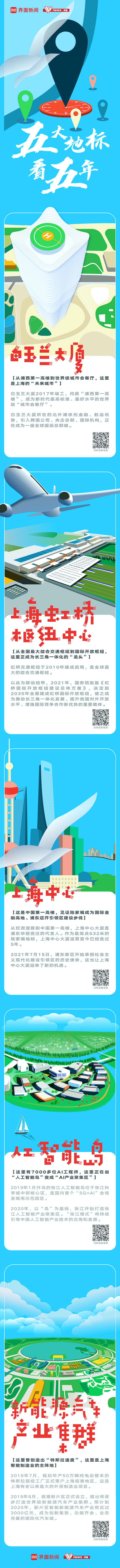 白玉兰大厦、上海虹桥枢纽中心、上海中心、人工智能岛、新能源汽车产业集群……这里是上海城市地标。