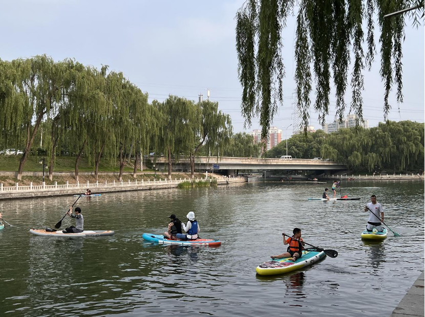 不只北京,上海、苏州、成都,包括天津这样的北方城市,在水上运动基地及城市里的公开水域,几乎都流行起了桨板活动。