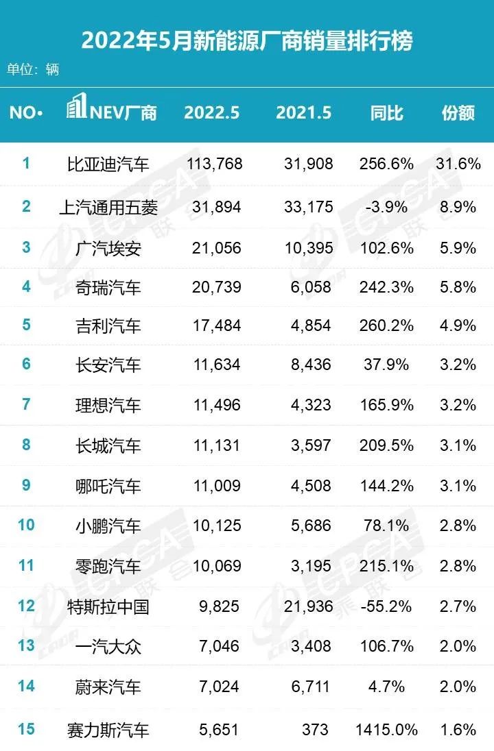 5月份新能源厂商销量排名 | 图片来自乘联会
