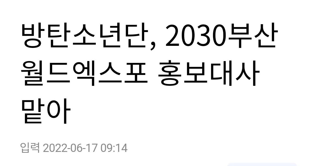 基于以上种种反应,HYBE紧急出面透露防弹少年团已接受韩国釜山市长请求,拟担任2030年釜山世界博览会宣传大使,组合活动持续推进中。但2030年世界博览会目前还处于竞标阶段,此举很大程度上是釜山市为了借助防弹少年团的影响力来加大竞标成功的可能性。