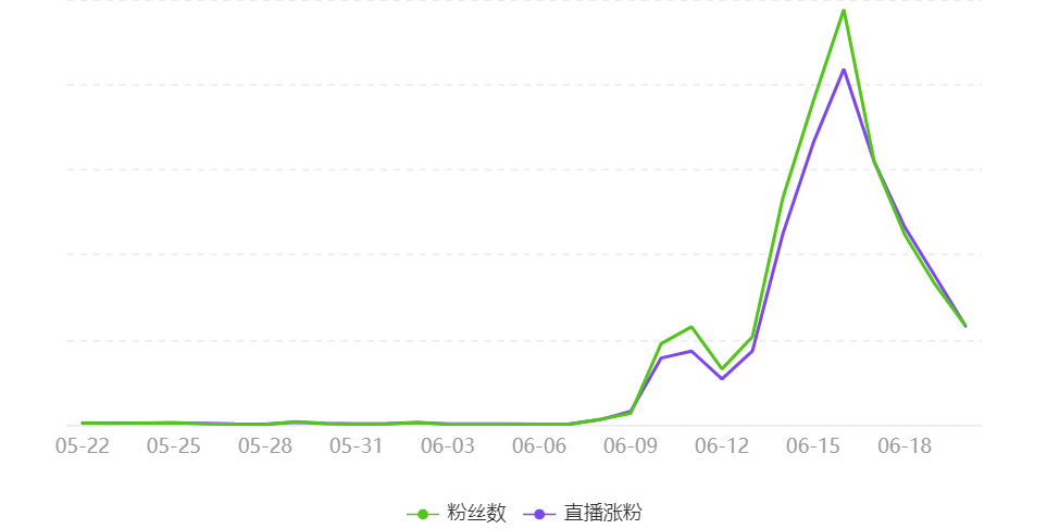 飞瓜数据显示,东方甄选在6月21日的账号涨粉情况为51.9万,直播涨粉为39.3万,且不论涨粉情况,与刚走俏社交平台之初每日百万级的新增粉丝情况如云泥之别,与6月20日数据同比也是大幅度直线下滑。