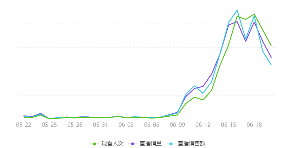 回落的还有东方甄选直播间的数据。千瓜数据显示,6月16日同样是东方甄选的账号数据和直播数据的顶峰,但过后便开始回落,其中销售额的回落尤为明显,6月16日创下6401万元销售额的东方甄选直播间,在6月21日的销售额却逼近腰斩,不足3500万元。