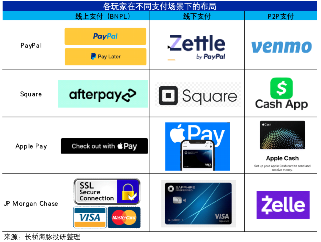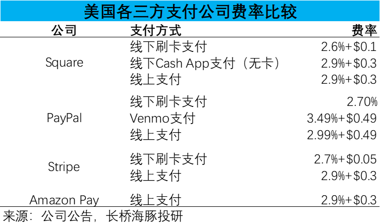 1)原生支付公司:以支付业务为主业的公司,例如PayPal,Square,Stripe等,此类公司的优势在于支付业务上的know-how,以及较多的商户端资源;
