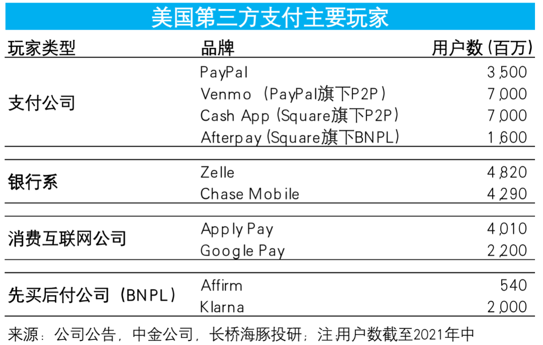 一、美国数字支付方兴未艾,银行系“old money”仍是主导