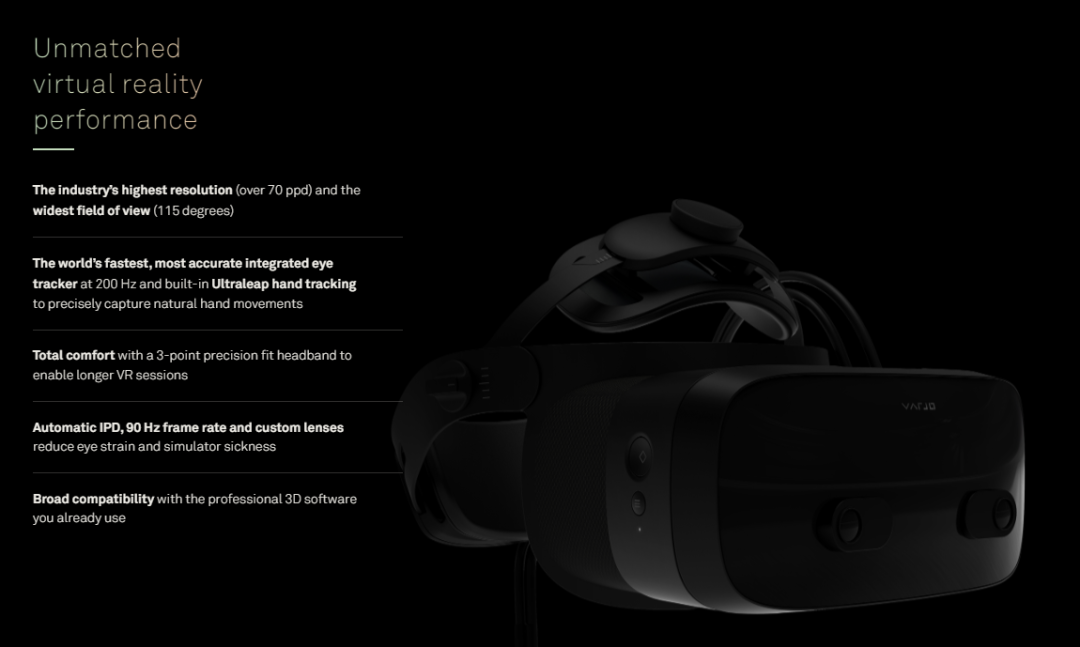 在 VR 头显领域,Meta 并不是唯一正在冲击视网膜分辨率的厂家。高端头显品牌 Varjo 推出的 VR-3 型号头显已经超过了70ppd,甚至略微超过了行业认为的视网膜分辨率标准,而且可视角度达到了115°,比 Quest 2 的 110°还要稍微大一点。