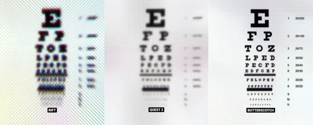 直接对比来看,Butterscotch 的显示清晰度已经远超早年的 Oculus Rift和当前在售机型 Quest 2: