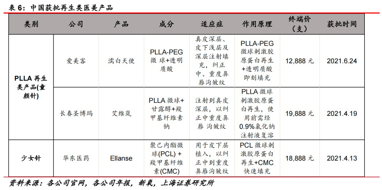 2021 年获 NMPA 批准的再生类医美产品仅有 3 款,产品壁垒与差异化程度较高,竞争格局良好,产品具有高毛利、高技术门槛等优势。
