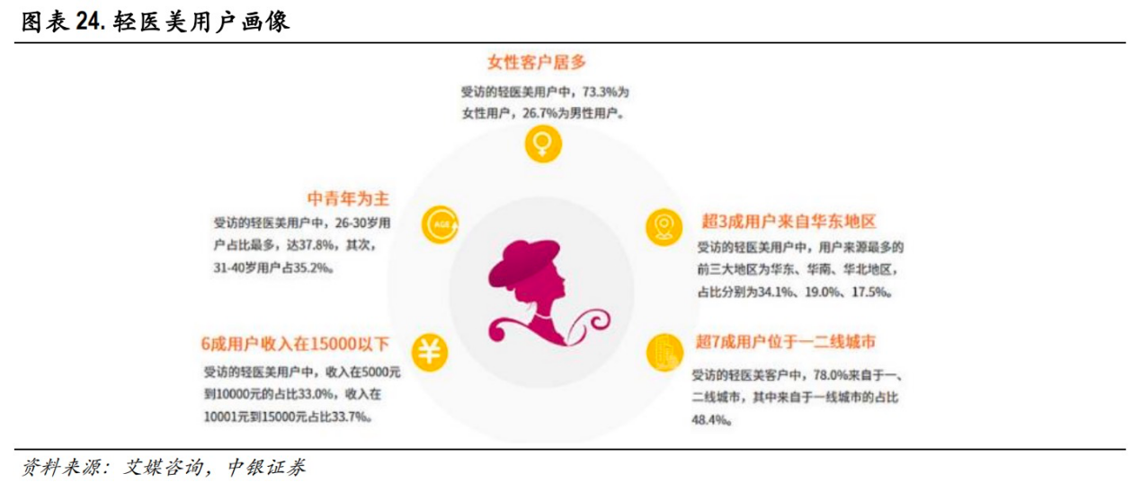 轻医美用户规模 2025年有望达到 2,744万人,为 2020年的 1.8倍。轻医美市场用户画像主要为 15-40岁城镇女性。