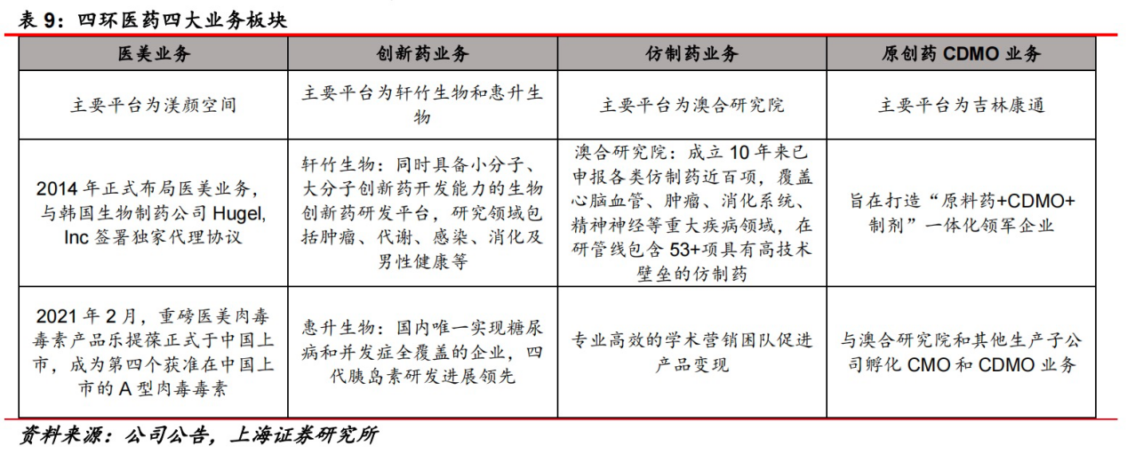 3、四环医药:卡位肉毒素赛道,医美管线储备丰富