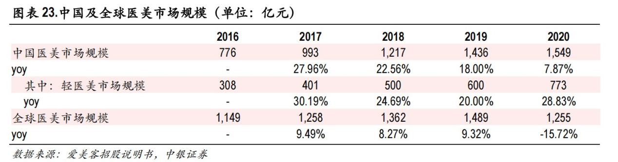 中国医美市场规模增速领跑全球,其中国内轻医美市场增速较快。
