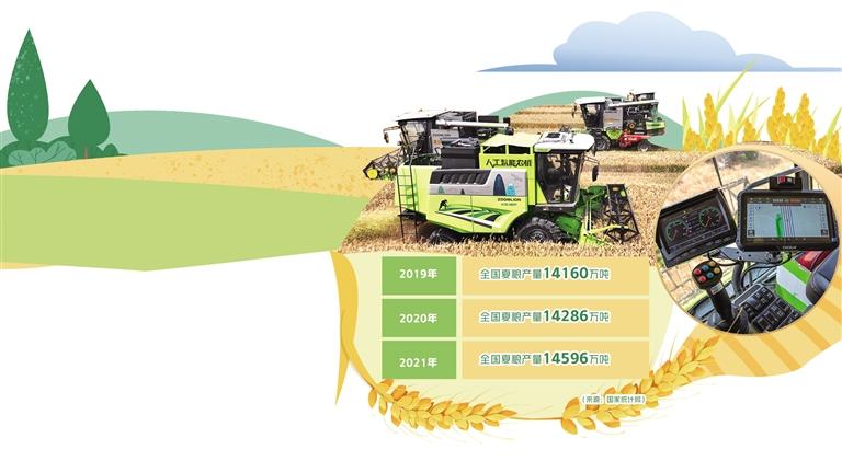“过去收麦都是比最短时间谁收的多,现在比的是谁损失的少。只有大力推进农业机械化、智能化,从传统农业向智慧农业转型,运用‘智能农机+智慧农业’科学种田,才能实现粮食增产增收。”山东乐陵市农机服务中心主任席延军介绍,降耗即是增收、减损即是增产,乐陵市发展高效、智能、减损、增产的农机装备,组织北斗导航无人驾驶收割机、高端小麦收割机等共计1900台有序流动作业,成立小麦机收应急作业服务队16支,检修各类农机数量7000台,确保小麦颗粒归仓。今年,乐陵市种植小麦86.8万亩,预计亩产650公斤,机收减损每下降1%,就能多收560万公斤粮食。
