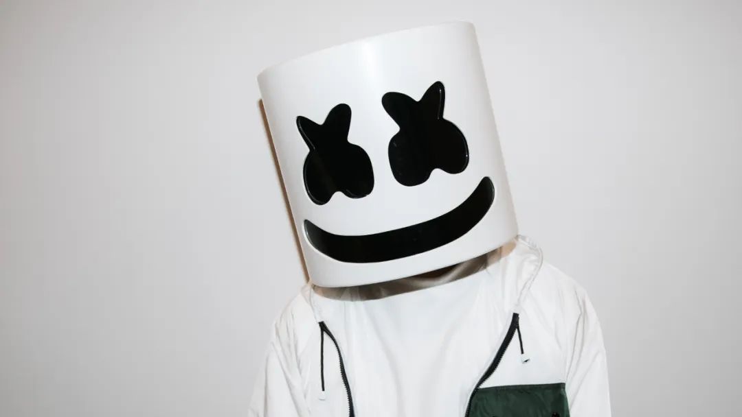Marshmello公开场合一直带着头套面具,不露出自己的真实身份;图片来源:juksy