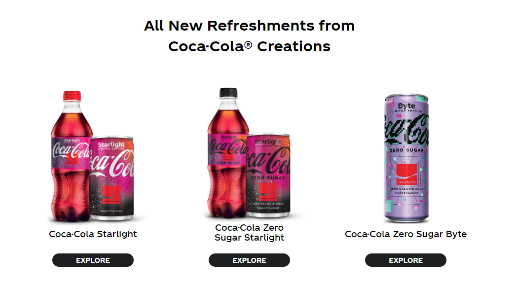 “乐创无界”目前已发售的产品;图片来源:可口可乐官网截图