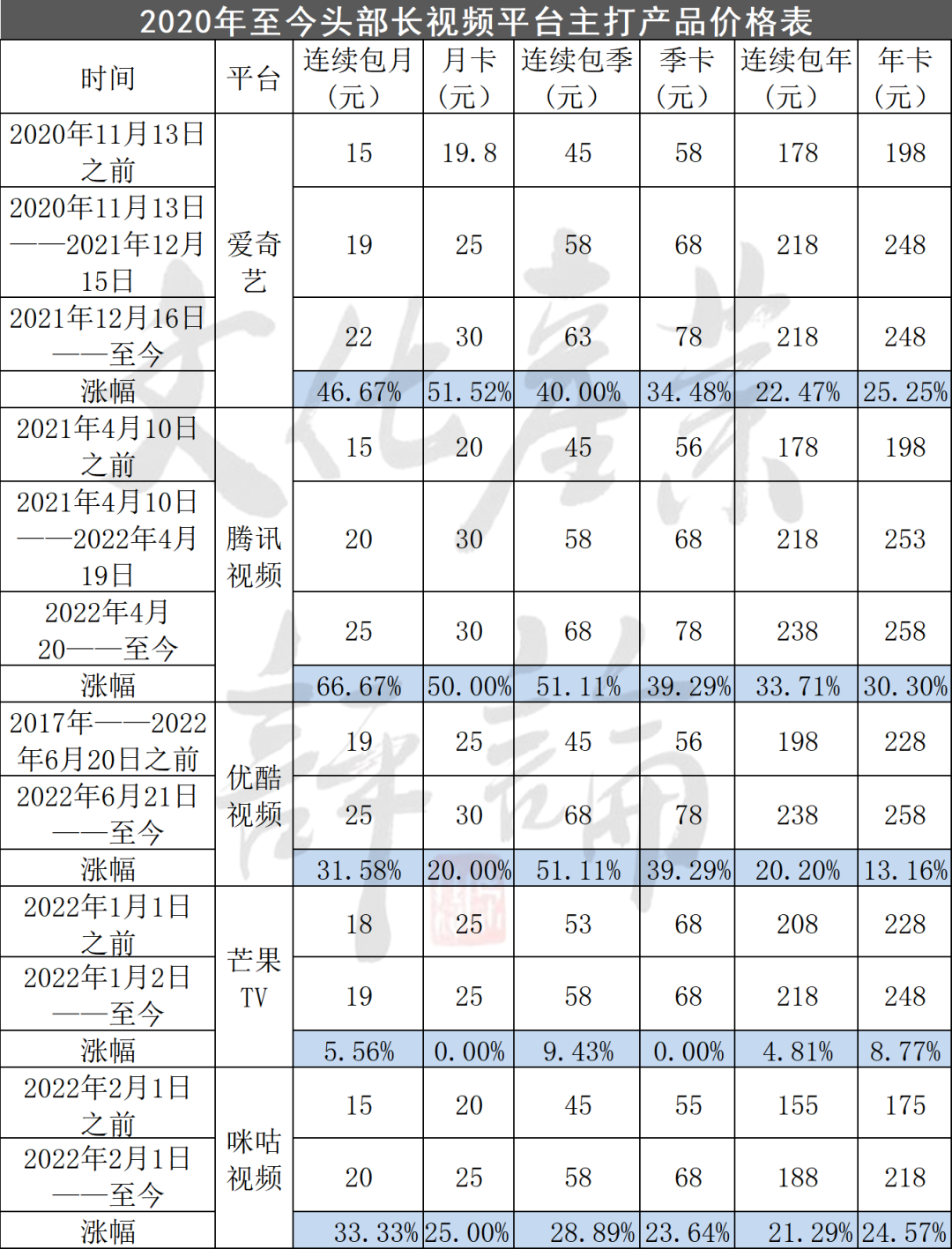 最近半年,长视频涨价就像连续剧,过几个月就会有上演一次,而且自带热搜体质,每次都会引发网友热议。
