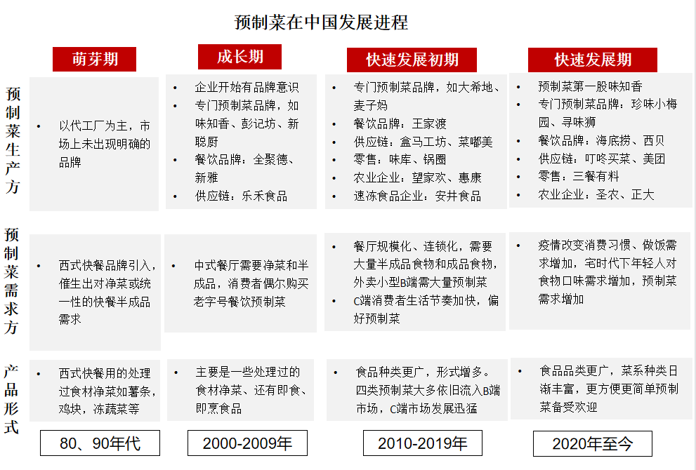 至2020 年,疫情让消费者更加注重餐饮卫生健康,隔离居家生活促使更多消费者进入厨房,预制菜在C 端消费市场萌芽发展。
