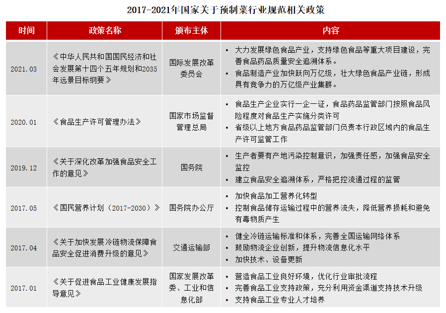 从2017年以来,国家出台了一系列食品加工相关政策,营造食品工业良好发展环境,有助于加强预制菜行业发展。
