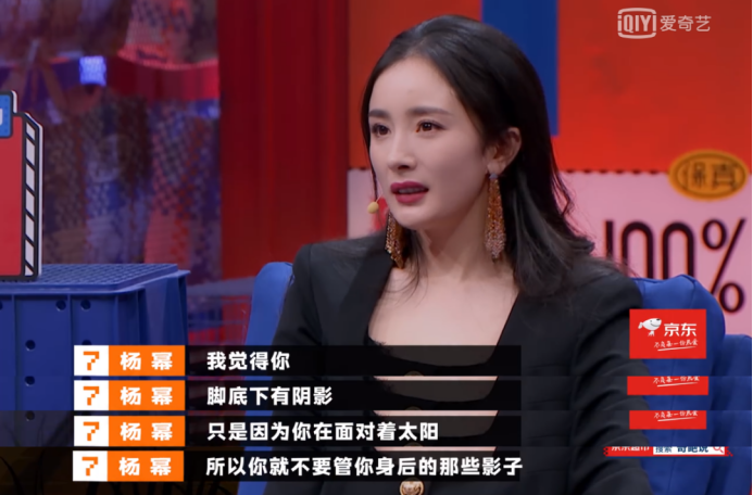 “有些罪还是要遭一下吧”“极度的坦诚就是无坚不摧”,特别是主持人马东问道“会把前任当人脉吗?”她直言“我觉得我才是那个人脉”……一系列发言成功给杨幂贴上了“金句女王”“人间清醒”的标签,并在“互联网嘴替”被创造出来后,成为其中的高阶选手。
