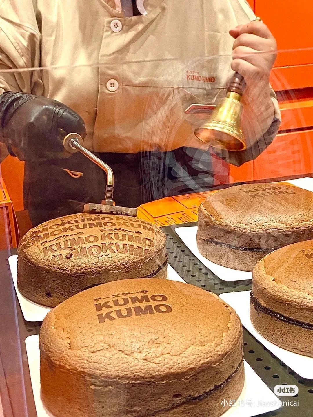 摇铃是KUMOKUMO的“出炉仪式”,还有蛋糕上的logo烙印、类似“爱马仕橙”的包装颜色,这些仪式感都成为吸引排队者的元素。