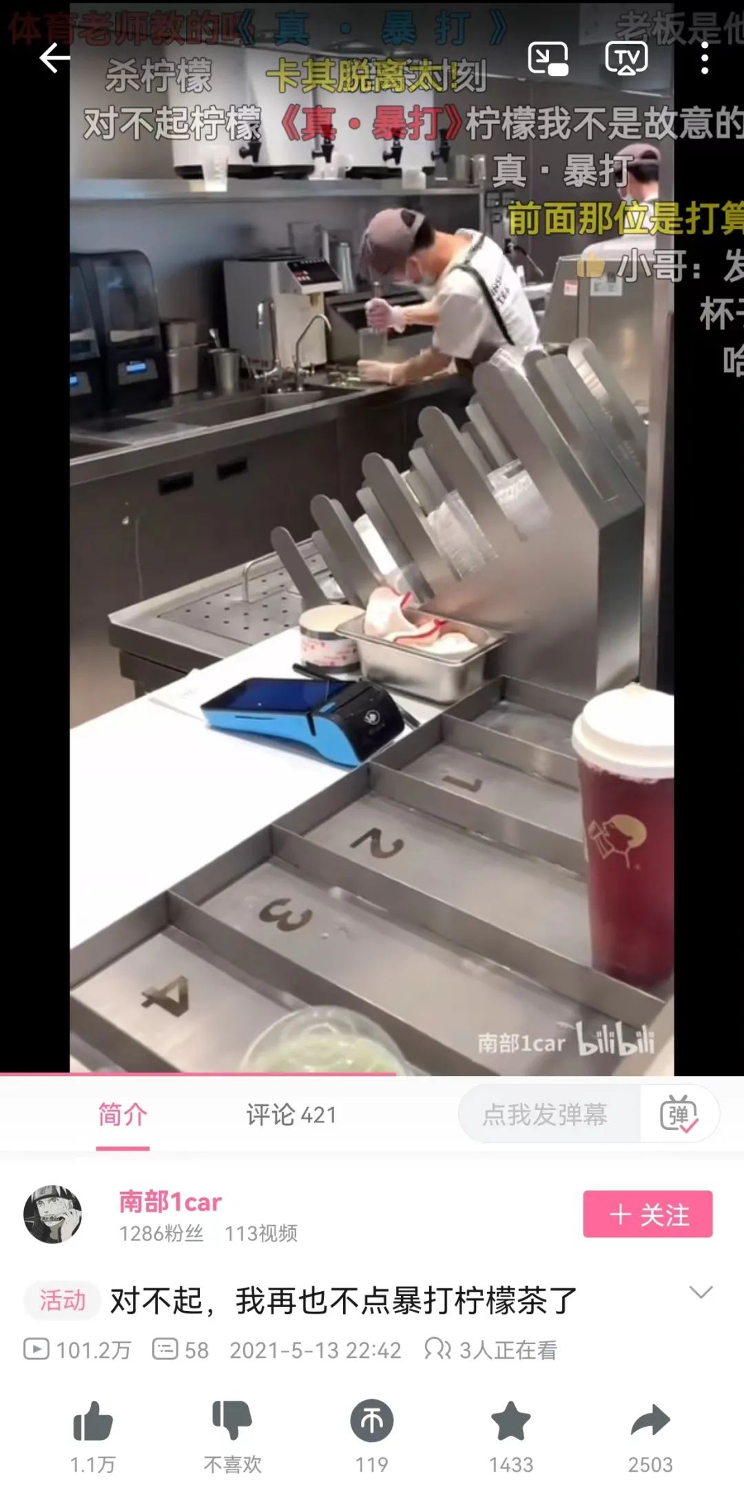 这样的场景也为网友“造梗”提供了素材,“每喝一杯暴打柠檬,就有一个小哥失去他的手臂”、“多少带点私人恩怨”、“没有买卖就没有伤害”。