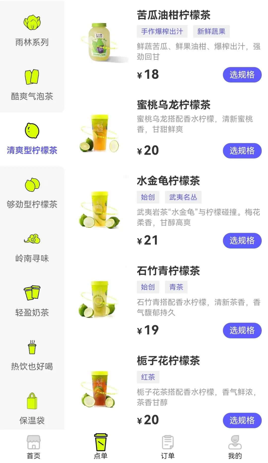 从一颗柠檬茶到暴打柠檬茶,变化的是更具噱头和趣味的“暴打”制作方式;从柠檬红/绿茶到鸭屎香柠檬茶、茉莉柠檬茶,进化的是对茶底融合的创新;再者,从青柠檬到香水柠檬,则是对柠檬原料进一步做了升级。