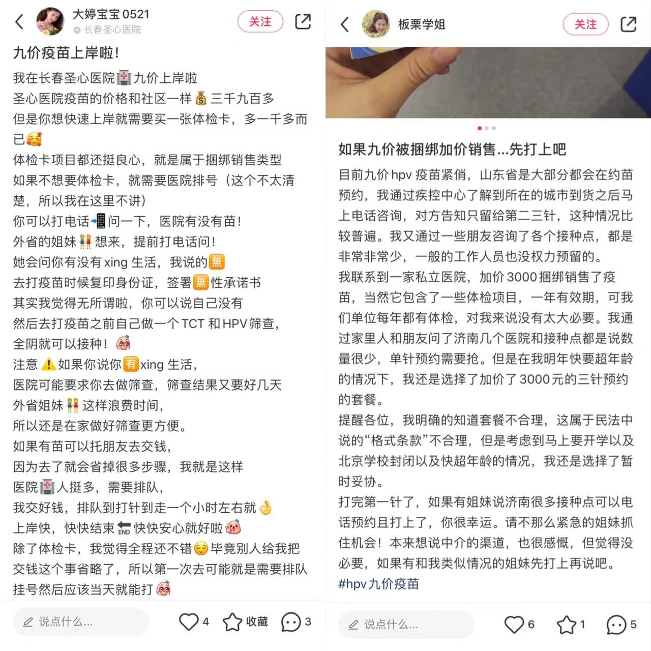 例如,有网友反馈,在长春圣心医院购买9价HPV疫苗需要和体检卡一起买,疫苗价格为3900元多,体检卡1000元以上。而在山东,也有网友表示自己加价3000元在私立医院预约了3针9价HPV。