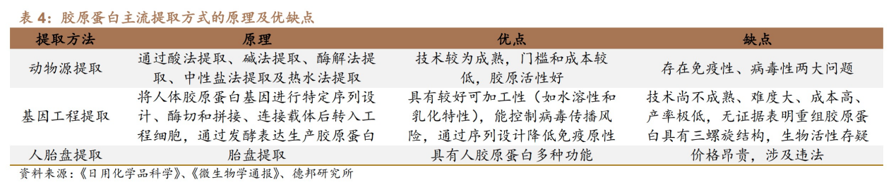 胶原蛋白分类:按提取来源和方式可分为天然胶原和重组胶原,其中重组胶原具有生物活性及相容性更高、免疫原性更低等优势,是一种较为安全的生物活性材料。