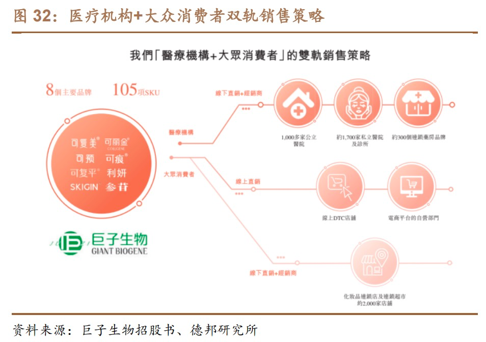 ③ 渠道铺设:“医疗机构+大众消费者”双轨渠道,建立起覆盖全国的全渠道销售网络,线上构建“明星+美容博主+皮肤科达人”的直播矩阵,定期参加顶尖学术会议提升公司影响力。