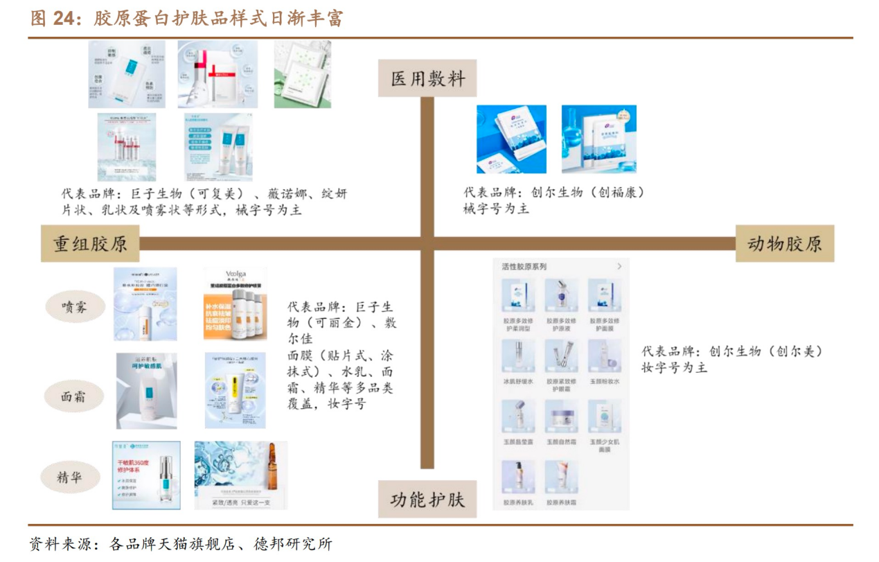 2、重组胶原蛋白应用广阔,专业护肤是重要方向。