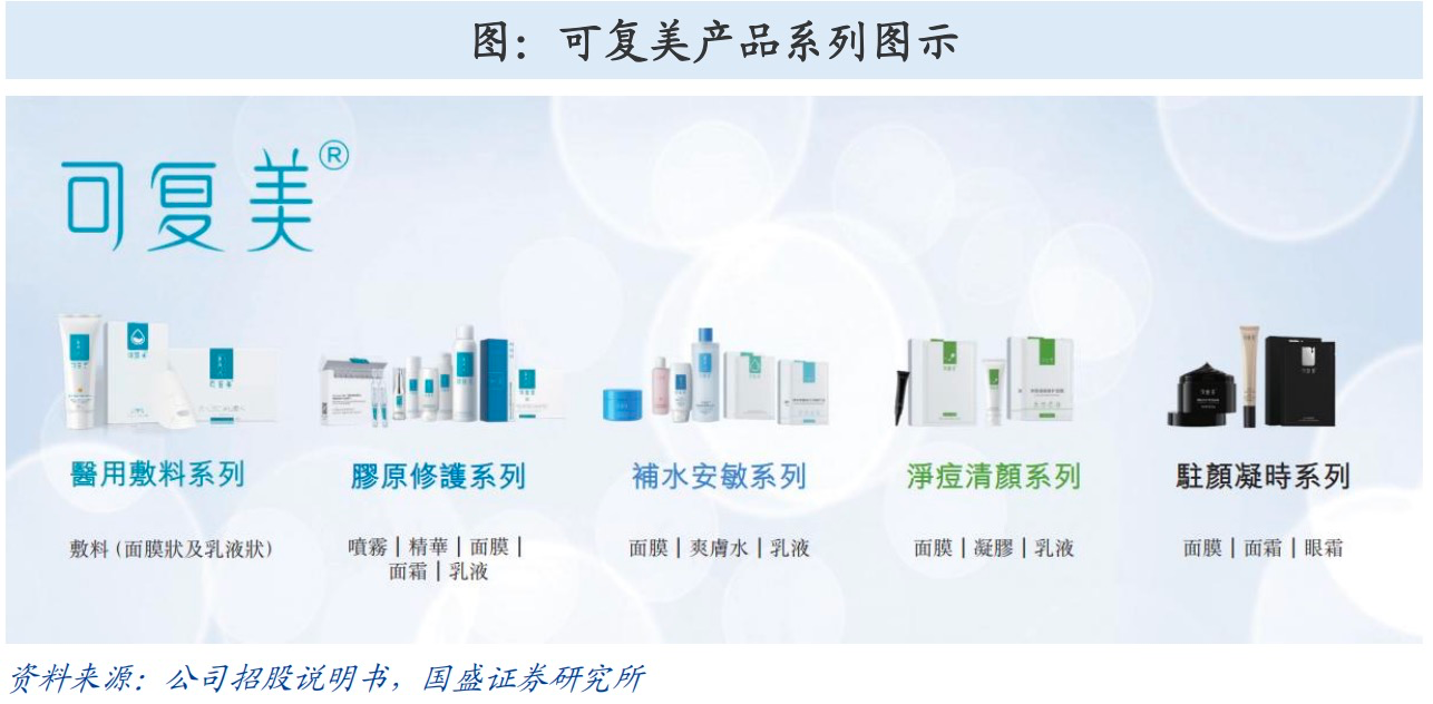 截至目前,品牌旗下共有 30 个 SKU产品,包括医用敷料、胶原修护、补水安敏、净痘清颜、驻颜凝时五个系列。