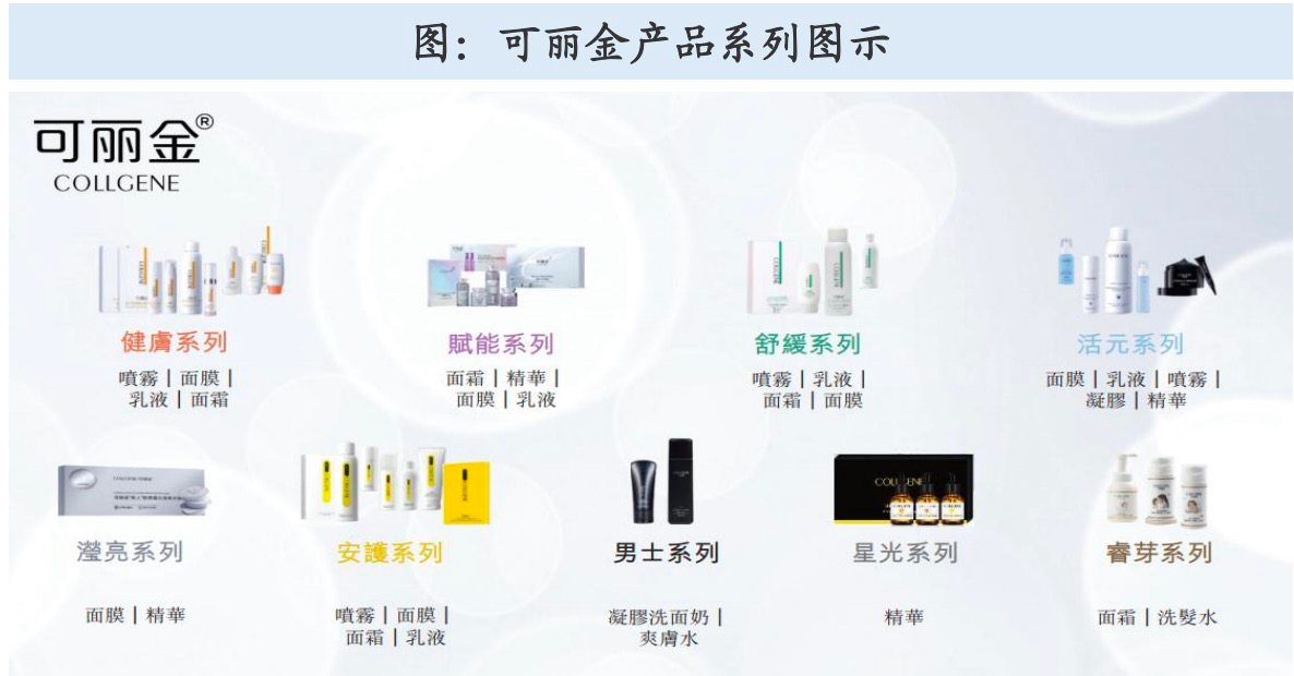 可复美医用敷料 21 年已销售超千万盒,以该产品塑造品牌,布局胶原修护、补水安敏等多个系列,天猫复购率达 42.9%,展现品牌知名度及客户忠实度;可丽金布局九大系列,实现线上+创客云商+经销+医美机构全方位覆盖。
