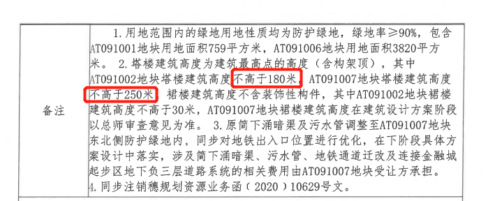 而据规划,该宗地块分为两个小部分。其中,AT091002地块塔楼建筑高度不高于180米,而AT091007地块塔楼建筑高度则为不高于250米,这也意味着未来金融城起步区将多增两栋超高层地标式建筑。