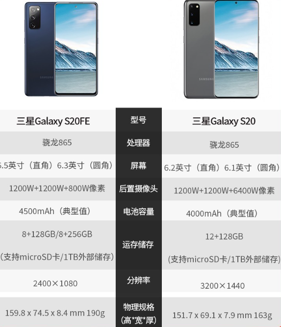 不过,S20系列发布后的两个月,三星又悄然发布了S20 FE,在S20的基础上将屏幕、相机等方面的参数缩水并增加了几个新的配色。售价上,S20 FE的国内售价为4999元,配置为8+128G,而S20系列的起售价为6999元,配置为12+128G。
