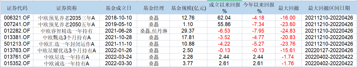 去年11月-今年4月末,中欧预见养老2050、中欧睿智精选一年持有、中欧甄选3个月、中欧汇选一年等4只基金,净值回撤幅度均超过了20%。作为养老目标型的FOF,为何会出现如此大的回撤?
