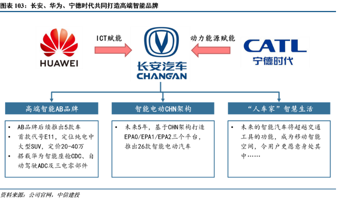 机构观点中,中信建投在研报认为,阿维塔高端智能电动车基于与华为、宁德时代合作开发CHN架构打造,产品对标如特斯拉Model Y、蔚来汽车ES6、理想ONE等。其按95%~40%的持股比例测算,阿维塔对上市公司市值贡献约1000~2000亿元。